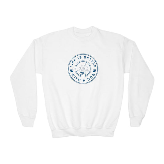 Life is Better with a Dog Kids Gildan Crewneck Sweatshirt